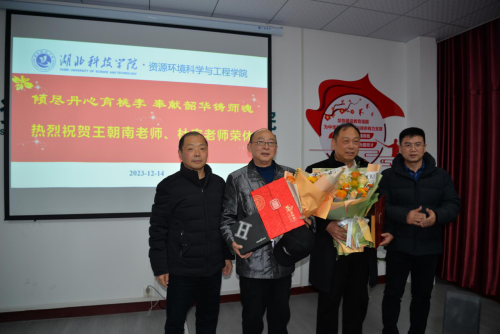 (通讯:周显鹏;审核:周浩)2023年12月14日下午,资环学院会议室里,欢乐温馨的气氛与户外的冷冬形成了强烈的对比,在这里,资环学院全体教职员工齐聚一堂,为学院资深教师王朝南老师、杜宇老师举行一场庄重又温馨的荣休仪式,共同见证这一难忘的时刻。