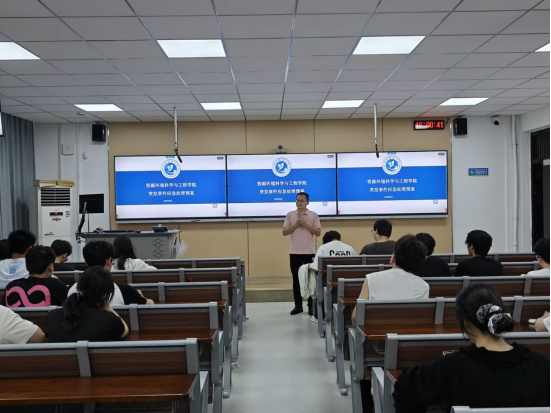 (肖乐)2025年5月22日下午,资源环境科学与工程学院在教2-405开展学生干部应急能力提升专项培训活动。学院心理专干肖乐老师面向全体班团干部、心理委员及寝室长共计60余人系统讲授了“学院学生突发事件应急处理预案(试行)”,通过理论讲解、案例剖析、应急处置演练三大模块,构建“预防-处置-善后”三级应急响应机制。