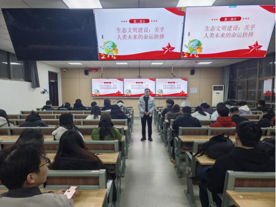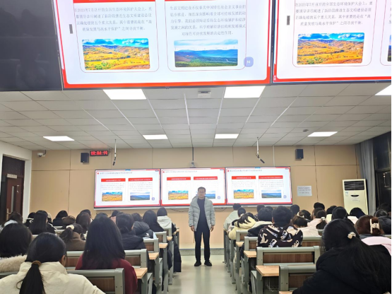 (肖乐)为深入学习贯彻党的二十届四中全会精神,推动生态文明理念深入人心,12月14日至15日资环学院辅导员肖乐、谈仙芳面相学院同学开展了“共筑生态文明之基 同走绿色发展之路”主题宣讲活动,本次主题宣讲紧扣党的二十大和二十届四中全会关于生态文明建设的战略部署,结合《中共中央关于制定国民经济和社会发展第十五个五年规划的建议》内容,围绕“绿色可持续发展的关键支撑”“关乎人类未来的命运抉择”“增进人民福祉的必然要求”三大主题展开,逻辑清晰、层层递进,现场气氛热烈,反响积极。