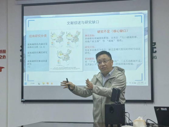 湖北省“北斗+”产业发展研究中心负责人郝汉舟教授,聚焦“湖北省县域就地城镇化的格局与驱动机制”并深耕实证研究。郝教授运用TOPSIS、GTWR、PVAR等量化分析工具,精准勾勒出湖北省县域就地城镇化“中部高、两翼低”的空间格局,厘清了县域经济发展驱动的区域异质性特征,明确产业聚集与城镇化之间存在双向联动的核心规律,为地方新型城镇化政策制定提供了坚实的实证依据。