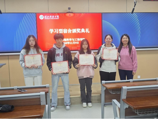 (通讯员:杨蕊绮 谈仙芳 审核:何国松)11月9日晚7点,湖北科技学院资源环境科学与工程学院“学习型宿舍颁奖典礼”在教二405举办。本次活动严格遵循学校2025年“学习型宿舍”评选工作要求,以“塑优良舍风 促浓厚学风”为核心,旨在将育人阵地向宿舍下沉,通过树立学习标杆,激发学生自主学习与集体协作意识,促进宿舍成员互帮互助、共同进步,构建积极向上的宿舍文化。经过宿舍申报、学院初评等规范流程,综合考察学业成绩、竞赛成果、学风特色等维度,最终10个宿舍凭借扎实的学习成果与浓厚的学习氛围脱颖而出,荣获“卓越型学习型宿舍”、“优秀型学习型宿舍”称号。