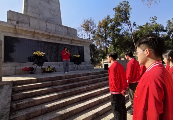随后,队伍转场赤壁市烈士陵园,园内庄严肃穆的氛围让每一位成员深受触动。青马班成员们手捧鲜花缓步拾级而上,共同向革命先烈郑重敬献花束。耿雯雯作为学员代表致辞,字句铿锵有力,既深情回望先烈为国家民族奉献一切的壮举,也发出青马学员传承红色精神、勇担时代使命的青春誓言。在烈士墓区,成员们列队缓缓瞻仰,凝视墓碑上的每一个名字,深切感悟先辈们的理想信念与精神伟力。此次红色实践活动,让青马班学员在思想上受到深刻洗礼、在精神上得到有力淬炼。未来,青马班将以此次活动为契机,持续深化思想铸魂与团队建设,引导青年学员将红色精神转化为助力未来发展的伟力,在个人成长与集体发展中双向赋能,为实现高质量发展注入青春智慧与担当。