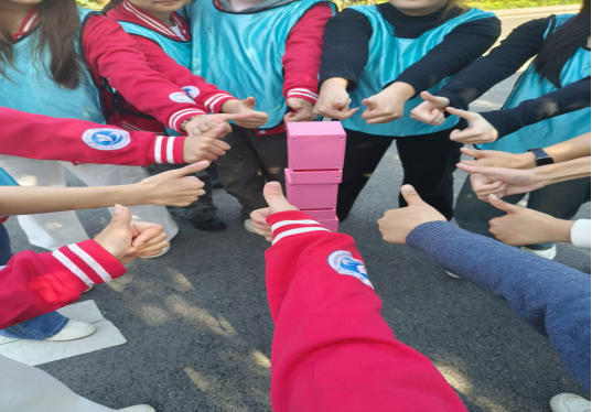 午后的素质拓展环节里,成员们先通过“破冰分组”快速打破隔阂、建立团队默契。随后在“合力搭建”项目中,众人协作操控绳索,精准把控力度与平衡,将盒子平稳叠起筑牢“高塔”;在“无敌风火轮”中,同学们化身移动的人形履带,挤在塑料布制成的圆环里,双手快速传送布袋,双脚整齐迈步,手脚协同着稳步向前滚动。一个个项目中,成员们从磨合到默契,在协作中强化了沟通意识,更通过集体行动强化了团队协作能力、进一步凝聚了团队共识、激发了集体荣誉感,也展现出了资环学子敢拼敢闯、团结一心的执行力。