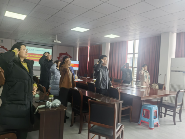 会议严格落实主题党日常规流程,全体党员依次完成党费交纳、参会情况通报等环节,在周显鹏同志的带领下,全体党员面向党旗重温入党誓词,铮铮誓言彰显党员初心使命与责任担当。